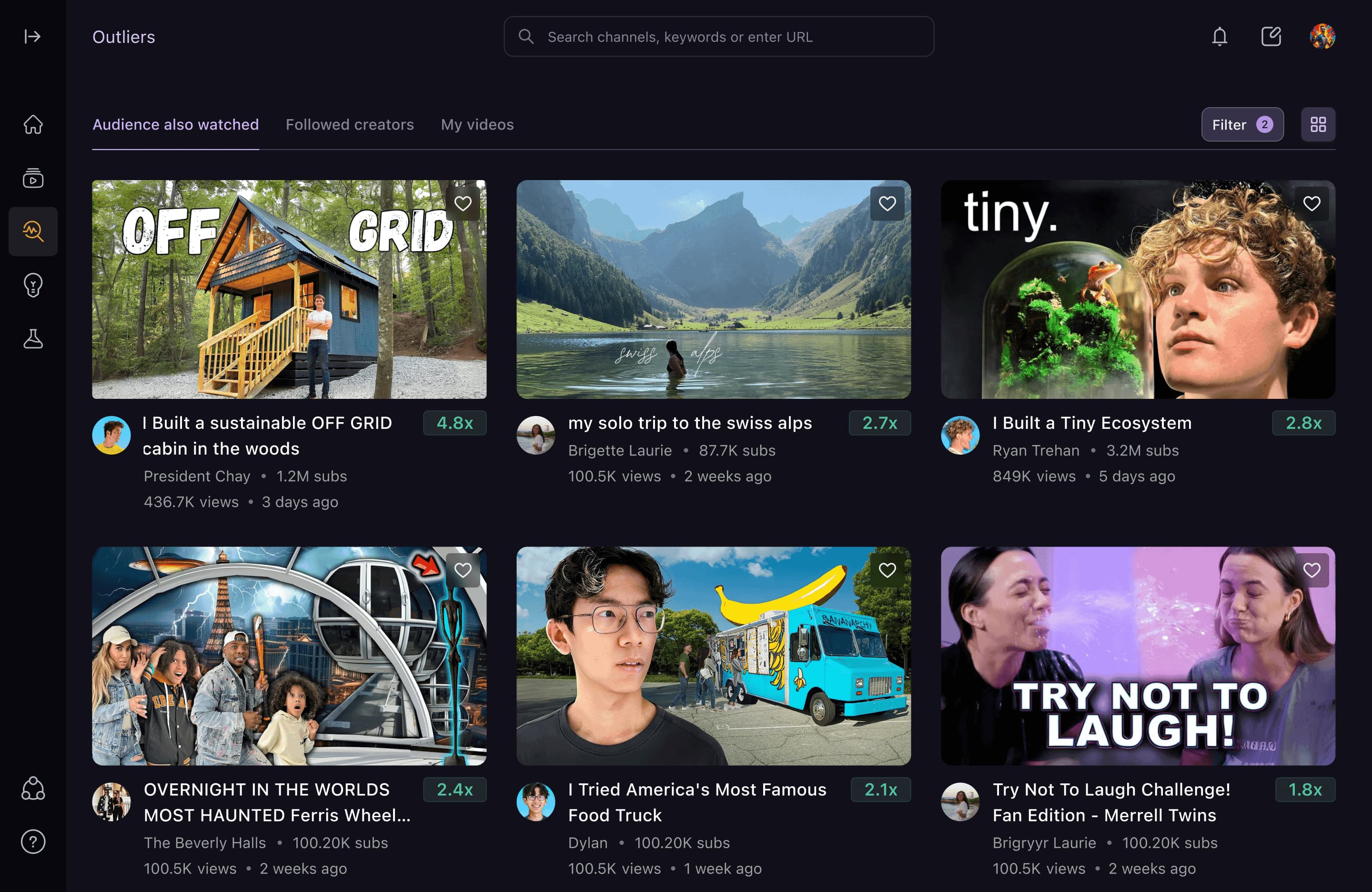 The Outliers Tool analyzes a creator’s historical performance data and leverages AI to surface videos with strong, unexpected success metrics. The curated videos spark new ideas for creators.