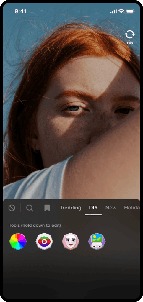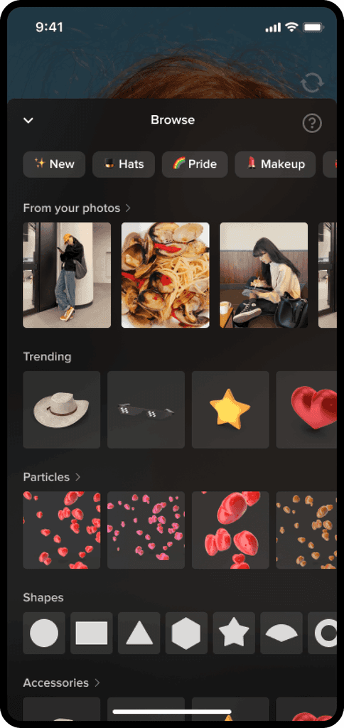 TikTok effect creation lives within the camera and provides a wide range of tools for creation. I contributed to optimizing this experience.